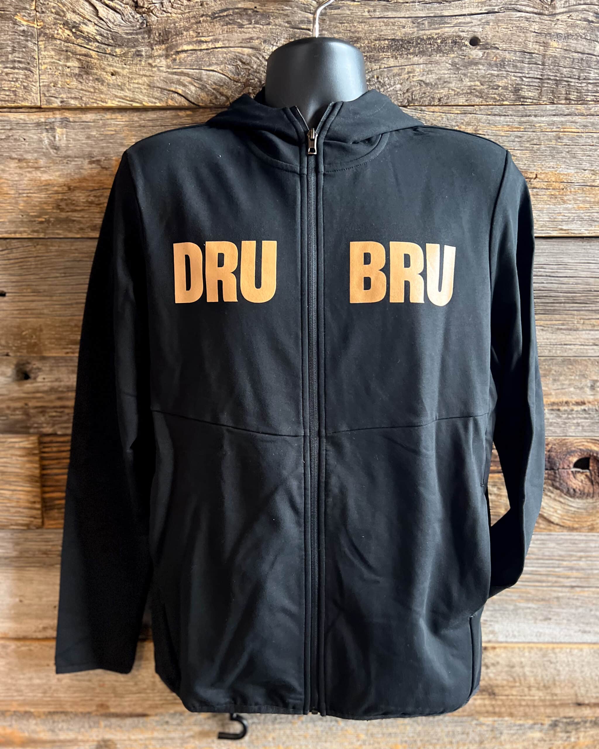 Performance zip up that can keep you warm in the office or on an outdoor adventure. The 4-way Stretch French Terry fabric, hidden pockets, and 3-panel Hood, make this zip-up hoodie is a versatile addition to your wardrobe. Black with bronze lettering.