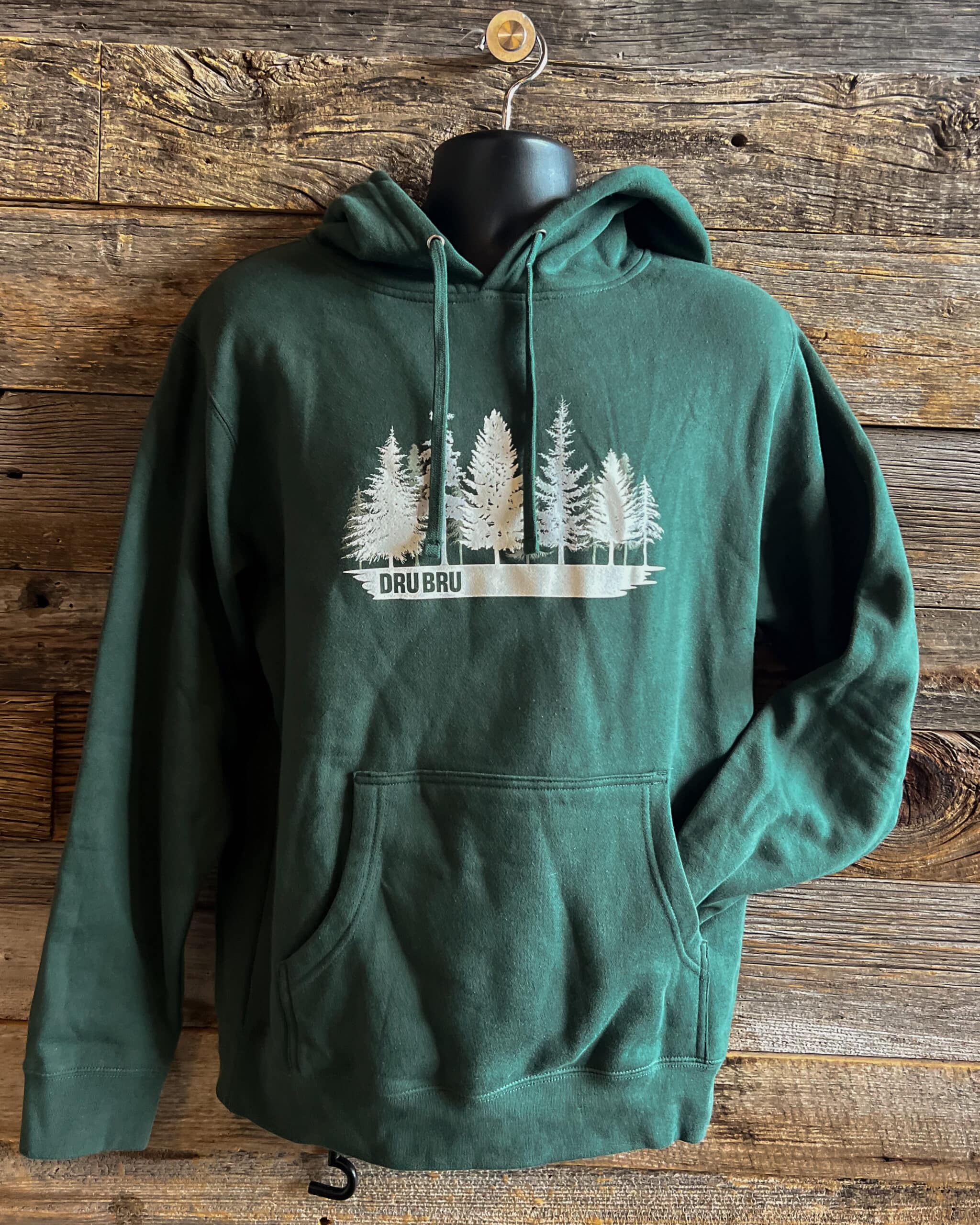 Cotton blend pullover hoody with Treeline print on front.